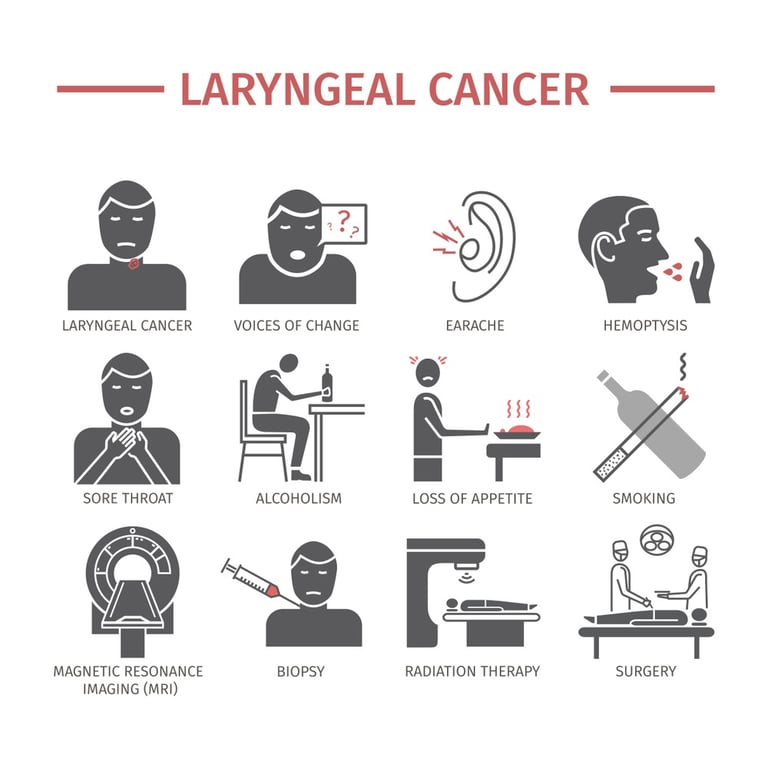 Laryngeal cancer is a type of cancer that affects the voice box and surrounding areas and can present with various symptoms.