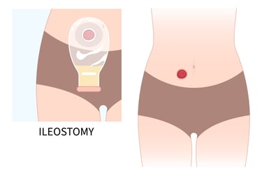 Resim 3. İnce bağırsak kanserinde geçici veya kalıcı olarak bağırsağın dışarı ağızlaştırılması (ileostomi) gerekebilir.