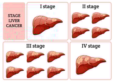 Karaciğer kanseri için kullanılan birkaç farklı evreleme sistemi vardır. Bunlardan en yaygın olanı Amerikan Kanser Derneği tarafından kullanılan TNM sistemi ve Barcelona Klinik Karaciğer Kanseri (BCLC) evreleme sistemi. BCLC aynı zamanda hastanın genel sağlık durumu ve karaciğer fonksiyonunu da dikkate alır, bu nedenle tedavi planlamasında sıklıkla tercih edilir. Bu evreleme süreçleri karaciğer kanserinin tedavisini planlamak ve prognozu değerlendirmek için kritik öneme sahiptir. Hastanın evresine göre en uygun tedavi yöntemi (cerrahi, radyoterapi, kemoterapi, hedefe yönelik tedavi veya immünoterapi) belirlenir.