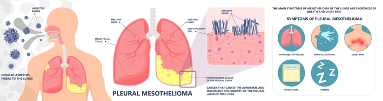 Resim 2. Akciğer mezotelyoması sıklıkla asbest maddesi ile ilişkilidir. Öksürük, balgam ve nefes darlığı gibi şikayetlere yol açabilir.