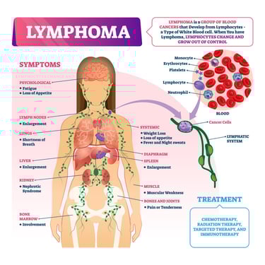 Non-Hodgkin Lenfoma (NHL) lenf sisteminin bir dizi farklı kanser türünü ifade eder ve lenf düğümleri, dalak ve bağışıklık sistemini etkileyen hastalıkları kapsar. Hodgkin Lenfoma'dan farklı olarak, NHL çok daha çeşitli hücre tiplerini ve alt tiplerini içerir ve genellikle daha heterojen bir hastalık tablosu sunar. NHL'nin önemi, hem yaygınlığı hem de çeşitliliği nedeniyle artmaktadır. Tedavi yöntemleri ve prognoz, NHL'nin özel alt tipine, hastalığın evresine ve hastanın genel sağlık durumuna bağlı olarak büyük ölçüde değişkenlik gösterir. Bazı NHL türleri yavaş ilerleyebilir ve minimal tedavi gerektirebilirken, diğerleri çok daha agresif olabilir ve yoğun kemoterapi veya immünoterapi gerektirebilir. NHL'nin erken teşhisi ve uygun tedaviye erişim, hastalığın yönetiminde ve hastaların yaşam kalitesinin iyileştirilmesinde önemlidir.