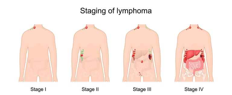 Non-Hodgkin Lenfoma (NHL) için tümör evrelemesi, hastalığın vücutta ne kadar yayıldığını belirlemek amacıyla yapılır ve tedavi planlaması için kritik öneme sahiptir. NHL'nin evrelemesi genellikle Ann Arbor Evreleme Sistemi kullanılarak yapılır, bu sistem Hodgkin Lenfoma için de kullanılır. İşte NHL'nin evrelemesi: