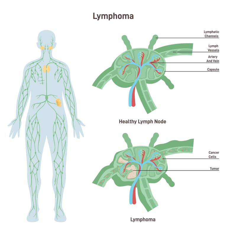 Resim 2. Lenfoma halsizlik, lenf bezlerinde şişlik, ateş ve tuttuğu organa göre şikayetlere yol açabilir.