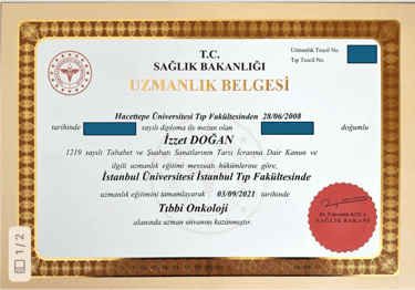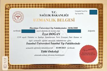 Onkoloji Doktorum brand has been approved by the Turkish Patent and Trademark Office. Assoc. Prof. Dr. İzzet Doğan provides services in the diagnosis and treatment process of all types of cancer (except blood cancers) and works at the Medical Oncology Clinic of Istanbul Acibadem Bakirkoy Hospital.