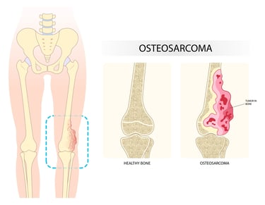 Osteosarcoma: It is the most common type of bone cancer. It usually occurs in teenagers and young adults, and the long bones (legs) are most commonly affected.
