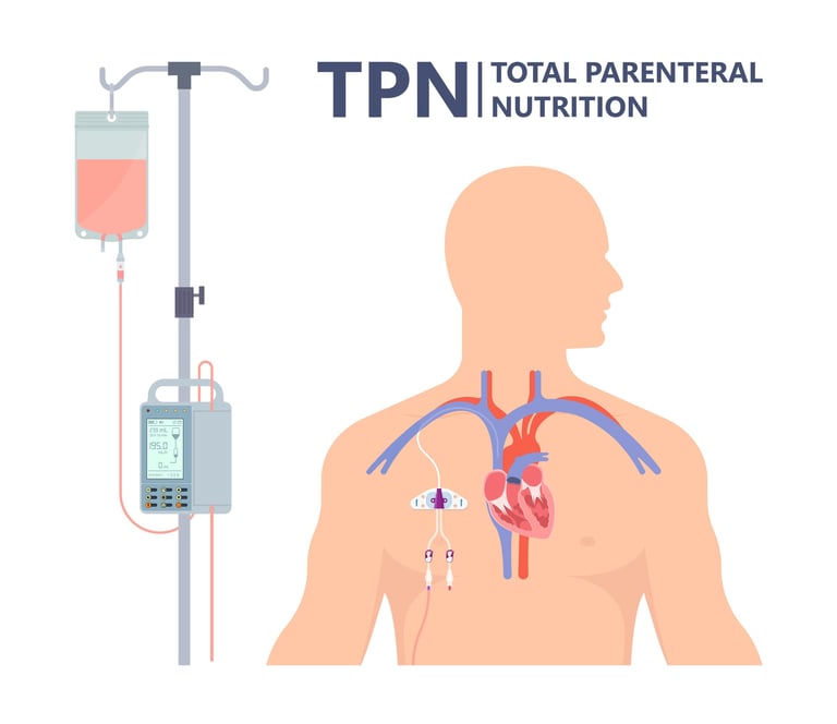 Image 3: For cancer patients who cannot feed orally, short-term TPN treatments in the form of intravenous serum can be administered.
