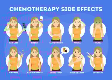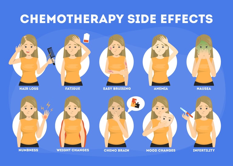 Side effects of chemotherapy drugs may vary depending on the drug used, the dosage and duration of treatment, as well as the general health condition of the patient.