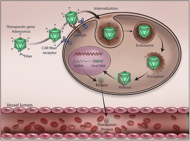 5-Application to Target Cells: The modified vector is injected into the patient's cells or delivered to the cells by other methods. This process can be done directly within the body (in vivo) or on cells in the laboratory (ex vivo).