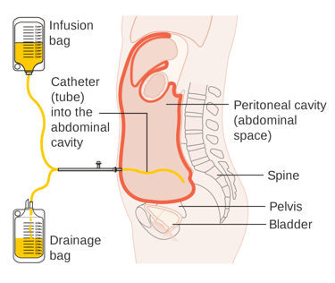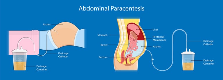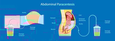 Image 2: In peritoneal cancer, fluid accumulation in the abdomen may occur. Fluid in the abdomen can be drained using the paracentesis method.